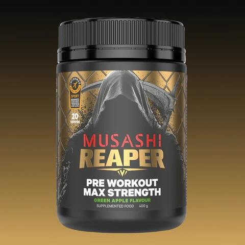 Musashi Reaper Pre workout Max Strength is ideal before intense training, formulated for the most intense training sessions to support razor-sharp focus, relentless energy, and powerful performance.