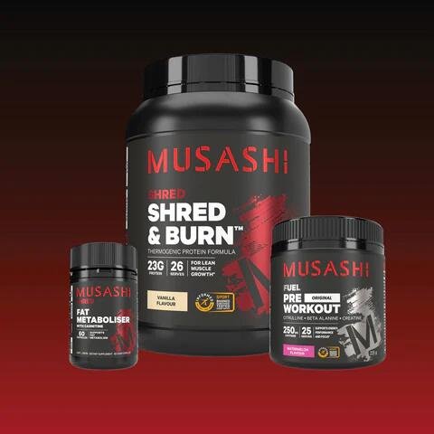 The MUSASHI SUMMER SHRED Bundle Pack combines three shredding products to support your summer body goals.