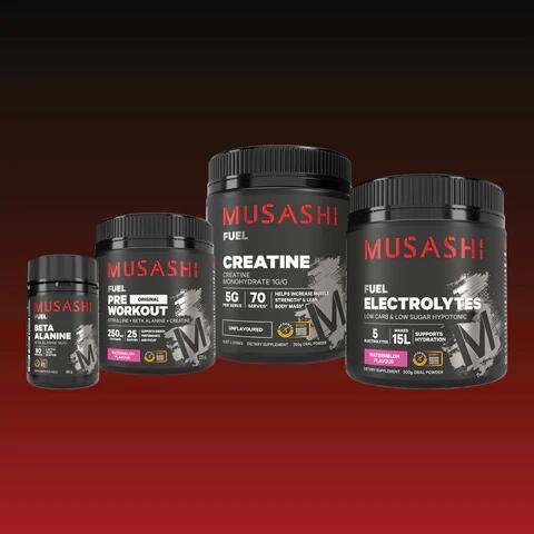 Musashi Electrolytes – A unique low sugar formulation containing a blend of key minerals lost in sweat during sports or exercise.