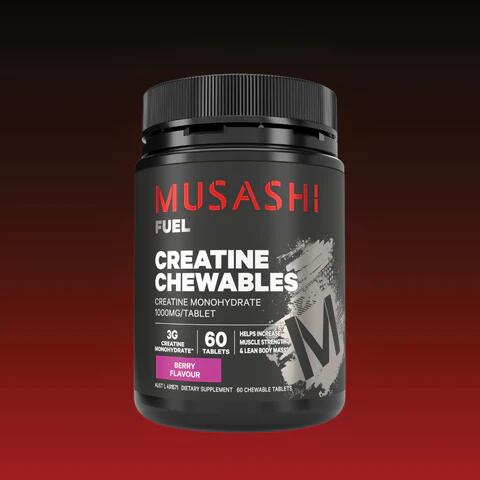 MUSASHI CREATINE CHEWABLES contain exclusively Creapure® to help increase muscle strength & performance during high intensity exercise. A low sugar, great tasting and convenient way to support your daily creatine intake.