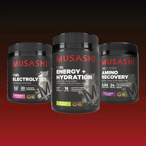 The Musashi Hydration Bundle combines three electrolyte-driven products to support energy, hydration, and recovery.