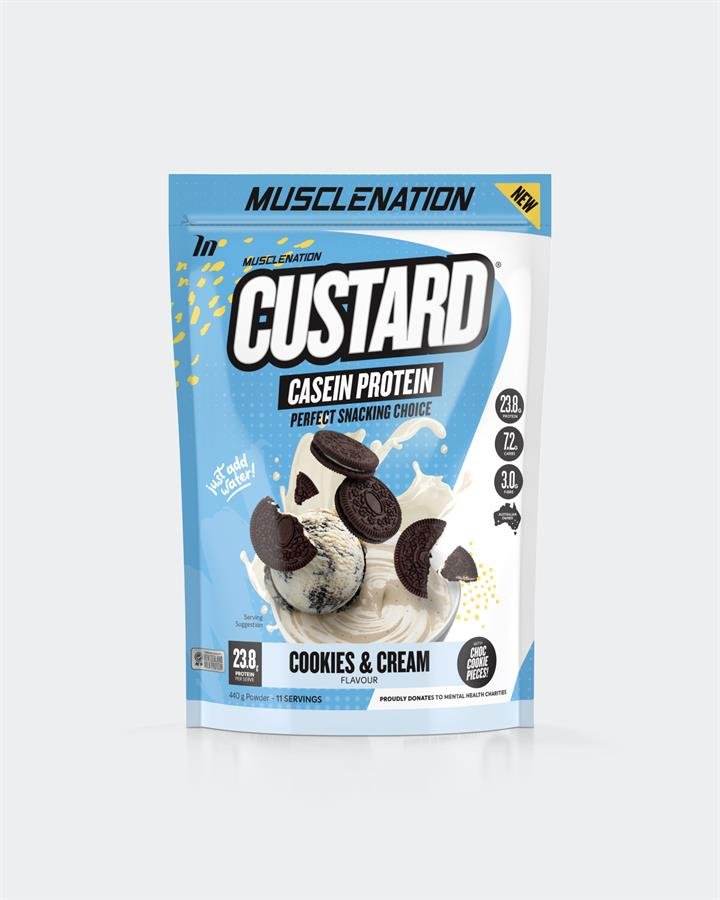 Muscle Nation CUSTARD Casein Protein – Cookies & Cream – 11 serves